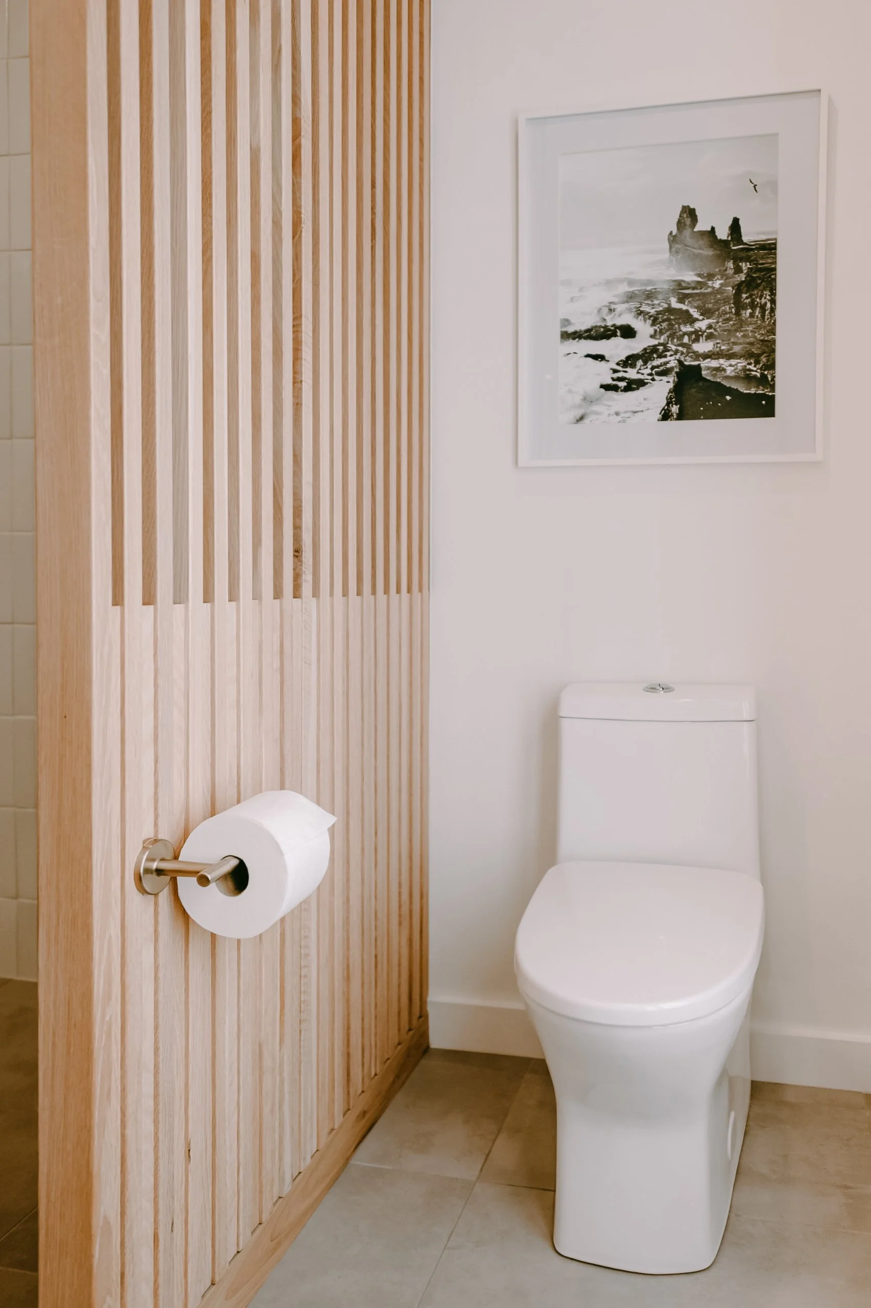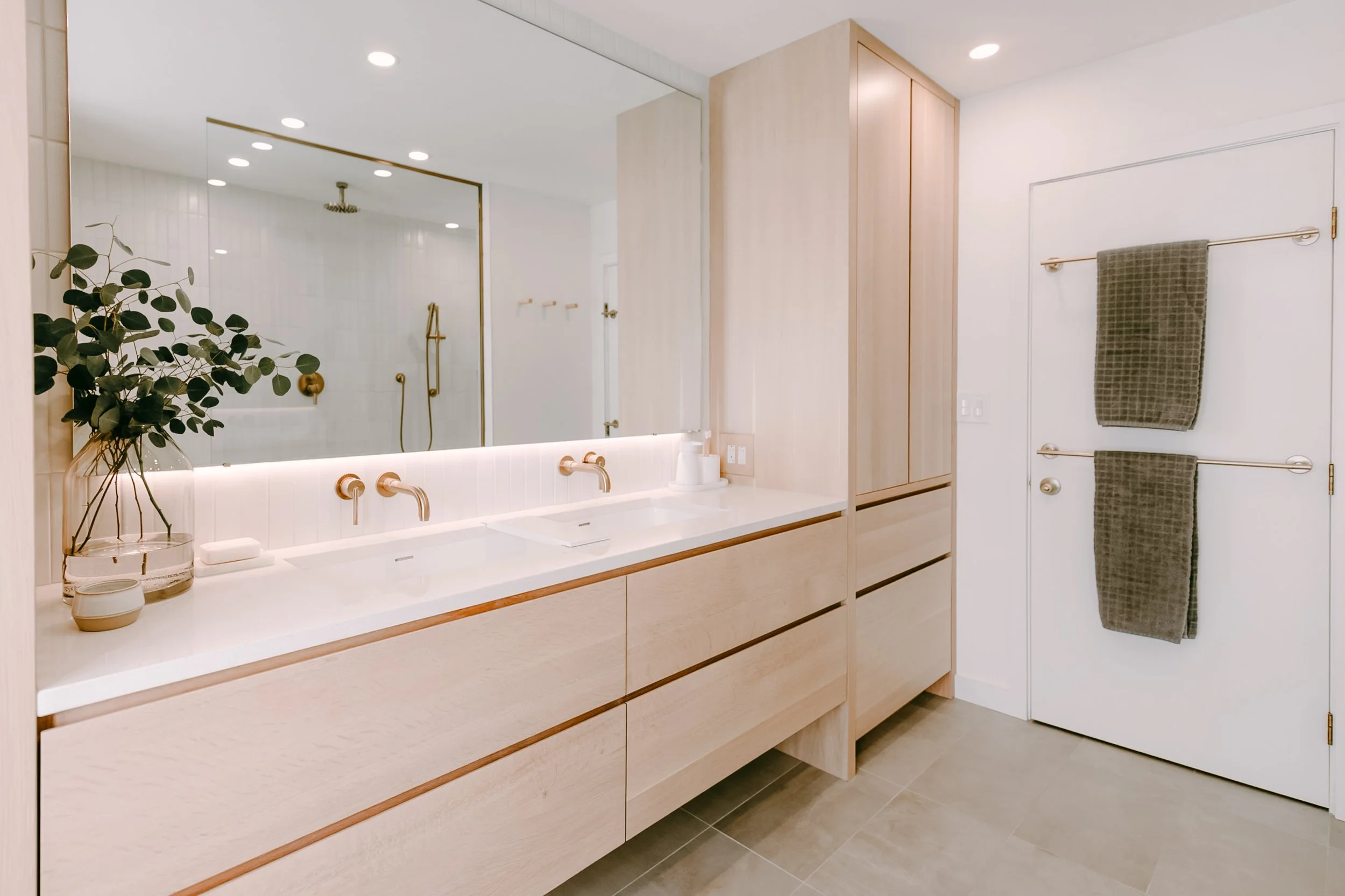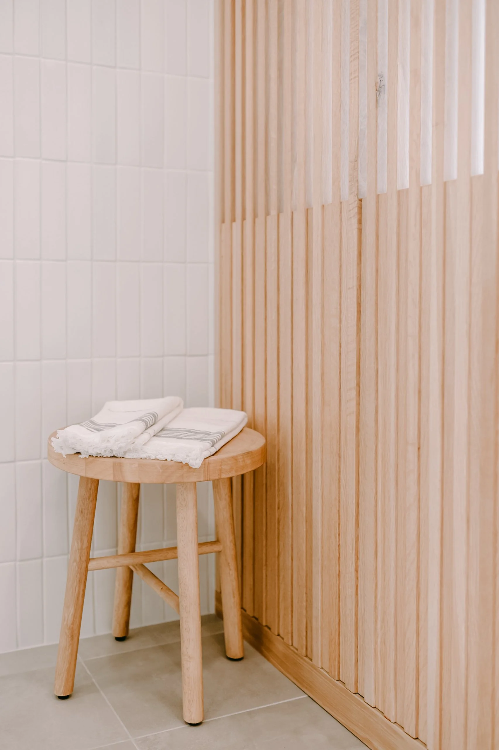Guided by a vision of modern simplicity and quiet luxury, Saratoga Primary Bath elevates an outdated 1990s space into a refined retreat grounded in artisanal detail. Through meticulous space planning and a curated selection of materials, fixtures, and finishes, the design introduces a serene, light-filled atmosphere anchored by thoughtful features. Dimmable lighting, a dedicated dry makeup vanity, an expansive shower with a rainfall head and built-in bench, and abundant integrated storage enhance both comfort and function. Custom white oak millwork, designed to showcase the signature dovetail joinery of local Amish artisans, brings warmth and precision, uniting timeless craftsmanship with modern elegance.
